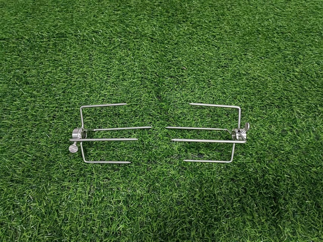 Τα μικρά Prong δίκρανα Rotisserie για το κοτόπουλο είναι κατάλληλα για τα κοτόπουλα, γυροσκόπια, ρόλοι του κρέατος ή λίγο πολύ οποιουδήποτε κρέατος εκτός από ολόκληρα τα ζώα σε ένα οβελίδιο. Το μακρύ καρύδι βιδών εξασφαλίζει ότι μπορείτε να στερεώσετε prong στενά στο οβελίδιο για να αφαιρέσετε τη μετακίνηση μαγειρεύοντας. Κατάλληλο για τον τετραγωνικό οβελό το ψητό σουβλίζει το τετράγωνο μέχρι 10mm σε μέγεθος. Θα ταιριάξει τα τετραγωνικά οβελίδια 6mm και 8mm επίσης όπως το καρύδι κλειδώματος είναι αρκετά πολύ να διαπεράσει κατευθείαν στο οβελίδιο