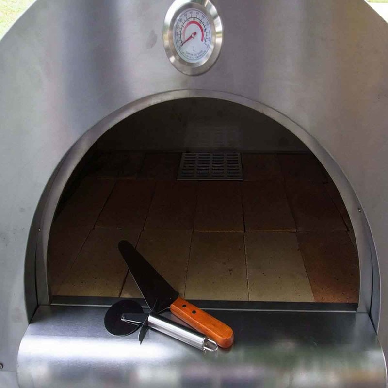 | Πάτωμα ψησίματος: | πέτρα πιτσών | Εξαρτήματα: | spatula, ρόδες, φτυάρι, κόπτης |
